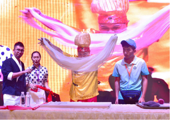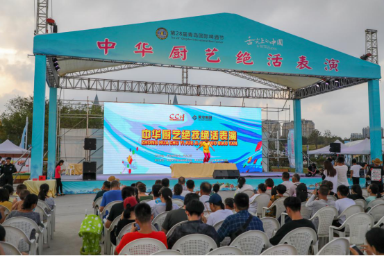 8月12日-17日,由黃發(fā)集團(tuán)主辦,中國烹飪協(xié)會(huì)承辦的第28屆青島國際啤酒節(jié)四大美食活動(dòng)賽事之一的“中華廚藝絕技絕活表演”在金沙灘啤酒城舉行。7位身懷絕技的廚藝高手為游客獻(xiàn)上高蹺花樣呼啦圈剪刀面、面皮長卷、手搟金絲面、騎獨(dú)輪車頭頂?shù)断髅?、蒙眼雕刻、長壽蘿卜絲、百米一根面等絕技絕活,讓市民和游客近距離感受中華美食文化,體驗(yàn)舌尖上的魅力,凸顯本屆啤酒節(jié)的“美食品牌化”。