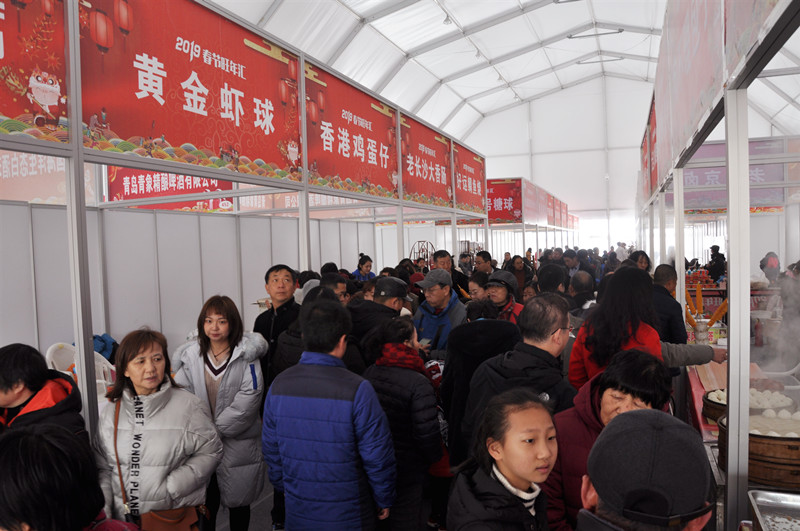 旺年匯期間,啤酒城變成歡慶的海洋。跑驢、戲曲選段、開門紅、大頭娃娃、旱船、鑼鼓鬧春、財(cái)神納福等豐富多彩的民俗藝術(shù)節(jié)目輪番上演,與市民一道歡喜過大年。同時(shí),各式各樣的糖球、天津狗不理包子、臺灣旋風(fēng)薯塔等不同地域的美食,讓市民和游客爭相前來購買品嘗。