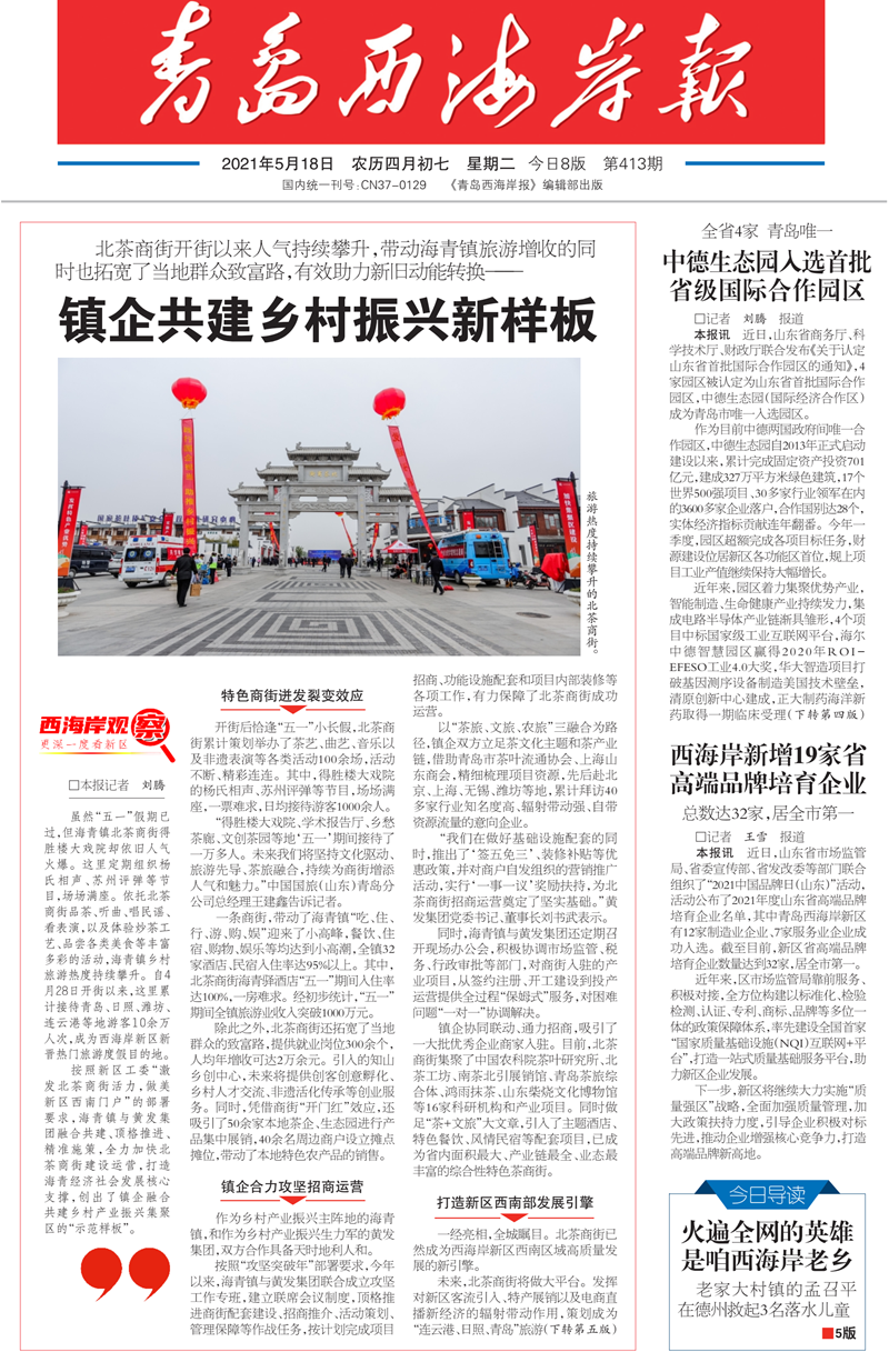 《青島西海岸報(bào)》5月18日?qǐng)?bào)道: